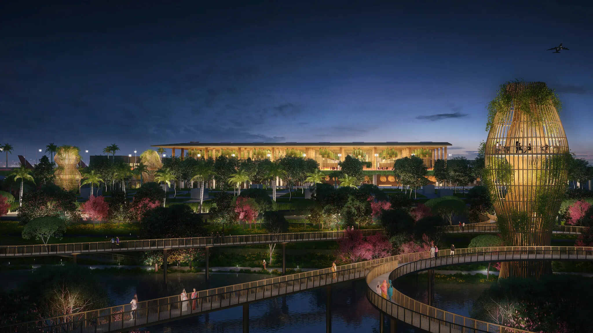 سفر هوایی در تابستان لذت چندانی به همراه نداشته است، اما اگر مسافران مجبور به تأخیر باشند، ممکن است امیدوار باشند که در ترمینال 2 فرودگاه بینالمللی Kempegowda، یکی از سریعترین فرودگاههای هند در حال رشد، که شرکت معماری SOM آن را به اختصار «ترمینال» نامیده است، گیر بیفتند. در یک باغ.» با الهام از دریاچهها و گیاهان سرسبز بنگالورو (همچنین با نام بنگلور و پایتخت ایالت کارناتاکا در جنوب هند شناخته میشود)، دارای رمپهایی است که دور تالابی در یک باغ استوایی میچرخند.