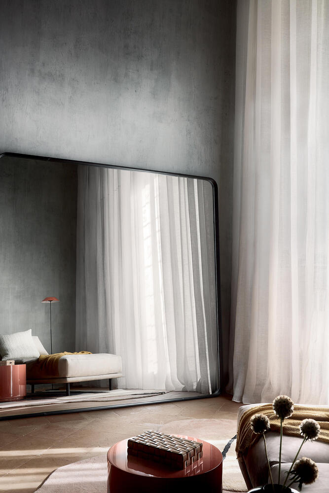 آینه های بزرگ نیز می توانند بافت ایجاد کنند و در نتیجه توهمات فضایی با ابعاد و عمق جالب بسازند. این را می توان در درجه اول به دو روش انجام داد: با نصب یک قاب آینه بافت دار برای جلوه سه بعدی، یا با قرار دادن محل آینه به گونه ای که یک شی بافت دار را منعکس کند - مانند یک میز قهوه روستایی، یک فرش خزدار یا یک چشم نواز. مجسمه سازی. از این نظر، تفکر خلاقانه و با دقت در مورد زاویه و قرار دادن یک آینه بزرگ برای دستیابی به اثر مورد نظر بسیار مهم است. امکانات بی پایان هستند. ایجاد یک راهروی باریک دو برابر اندازه، پرتاب نور به گوشه های تاریک، برجسته کردن عناصر معماری، هدایت توجه با ایجاد یک نقطه کانونی روی دیوار، یا برجسته کردن لوازم جانبی، نقاشی ها و قطعات مبلمان با انعکاس آنها از زوایای مختلف.