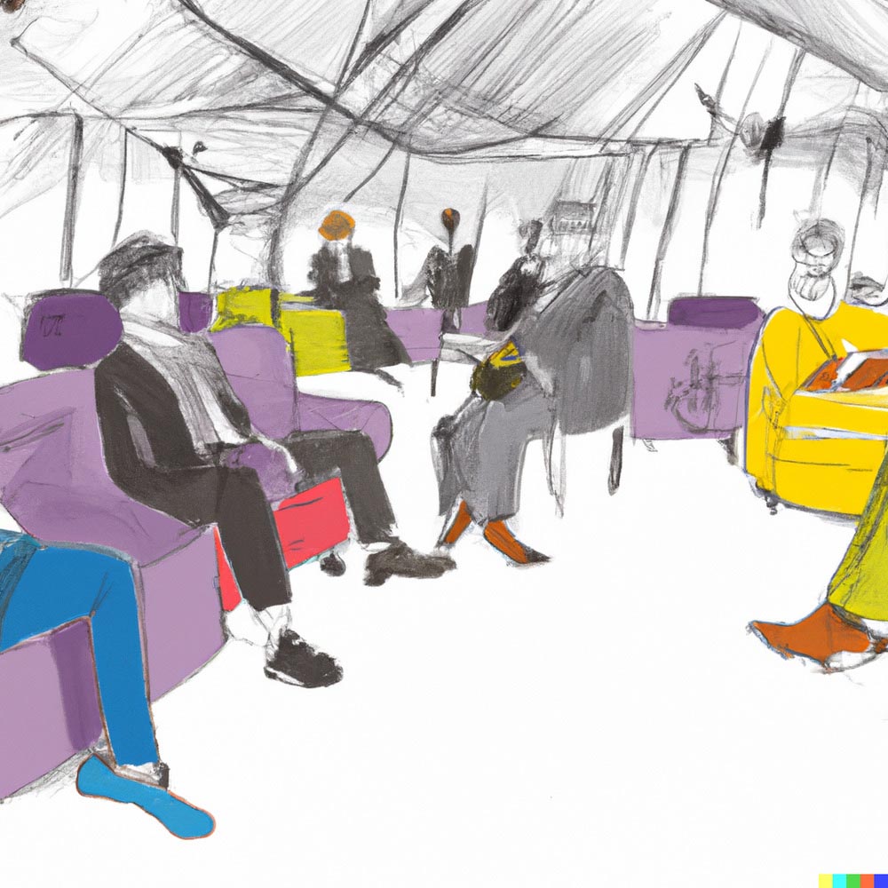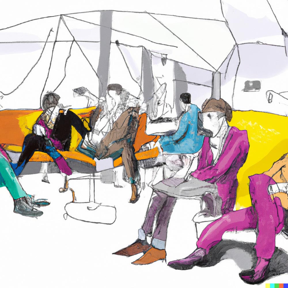 سالنهای نیمه عمومی معمولاً از صندلیهایی تشکیل میشوند که در اطراف دکورهای ساده چیده شدهاند و رنگهای تیره غالب هستند. نوع معماری زمانی کاریکاتور خود را زنده می کند که جزئیات آن را محکوم می کند که این فضا در واقع مکانی برای استراحت افرادی نیست که با عصا یا عصا راه می روند، زیرا وسایل قابل دسترس ندارند. یا برای افراد دارای کودک که نیاز به استراحت دارند، زیرا آنها معمولاً از صندلی های جداگانه تشکیل شده اند. برعکس، این فضاها شبیهسازی یک اتاق نشیمن را تشکیل میدهند، همانطور که سینما و تبلیغات قبلاً بیش از حد به ما گفتهاند، مکان زندگی خانگی که مرد سیس استریت منتظر همسر و آبجوش است.
