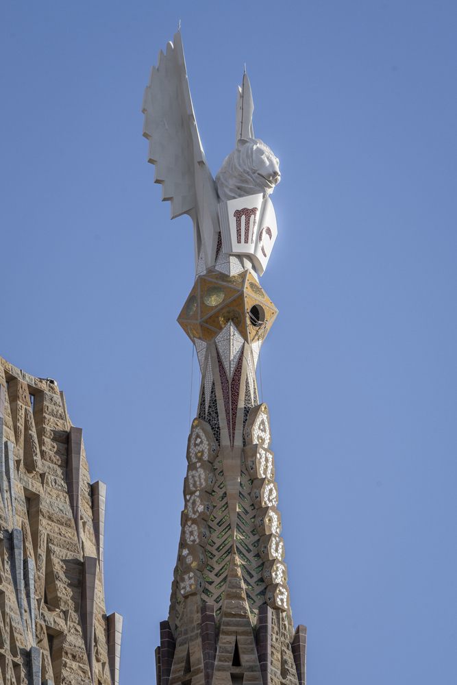 پیکره های تترامورف ساخته شده از سنگ مرمر تاسوس کار مجسمه ساز خاویر مدینا کامپنی است. جوردی فاولی، مدیر معمار ساگرادا فامیلیا، میگوید بالهای بالایی، عنصری مشترک برای چهار برج انجیلیستها، «با آخرین هندسه قاعدهای که توسط گائودی، یک هیپربولوئید بزرگ بیضوی استفاده شده، ایجاد شدهاند.